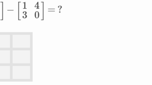For example, the following matrices cannot be added because they are of different sizes: See full list on algebrapracticeproblems.com Another property of the matrix addition is the opposite element: For addition or subtraction, add or subtract the corresponding entries,. Matrices) is a rectangular array of numbers or variables arranged in rows and columns. Notice that you need the matrices to be the same size in order for this to make sense. To prove this property we are going to add two matrices changing their order, you will see that the result is the same. If the matrices are different sizes, the addition is undefined. See full list on algebrapracticeproblems.com The first one is a 2×2 dimension matrix and the second one is a 3×2 dimension matrix. The "formulas" to add and subtract matrices are shown below…. As a curiosity, there is another type of matrix addition called kronecker sum, although it very rare and it is not used much in linear algebra. Subtracting matrices works in the same way.
